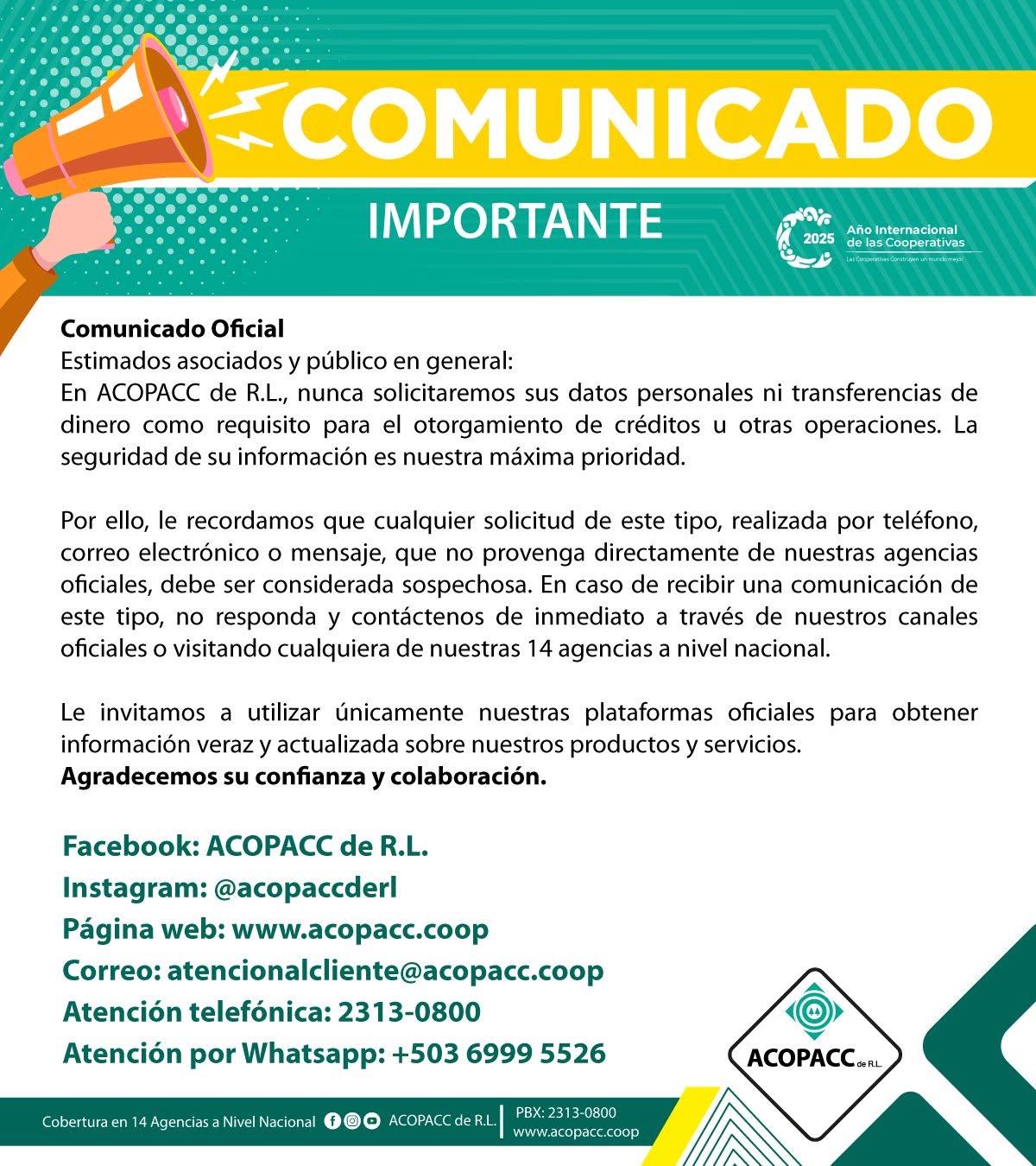 Para nuestros estimados asociados y público en general.